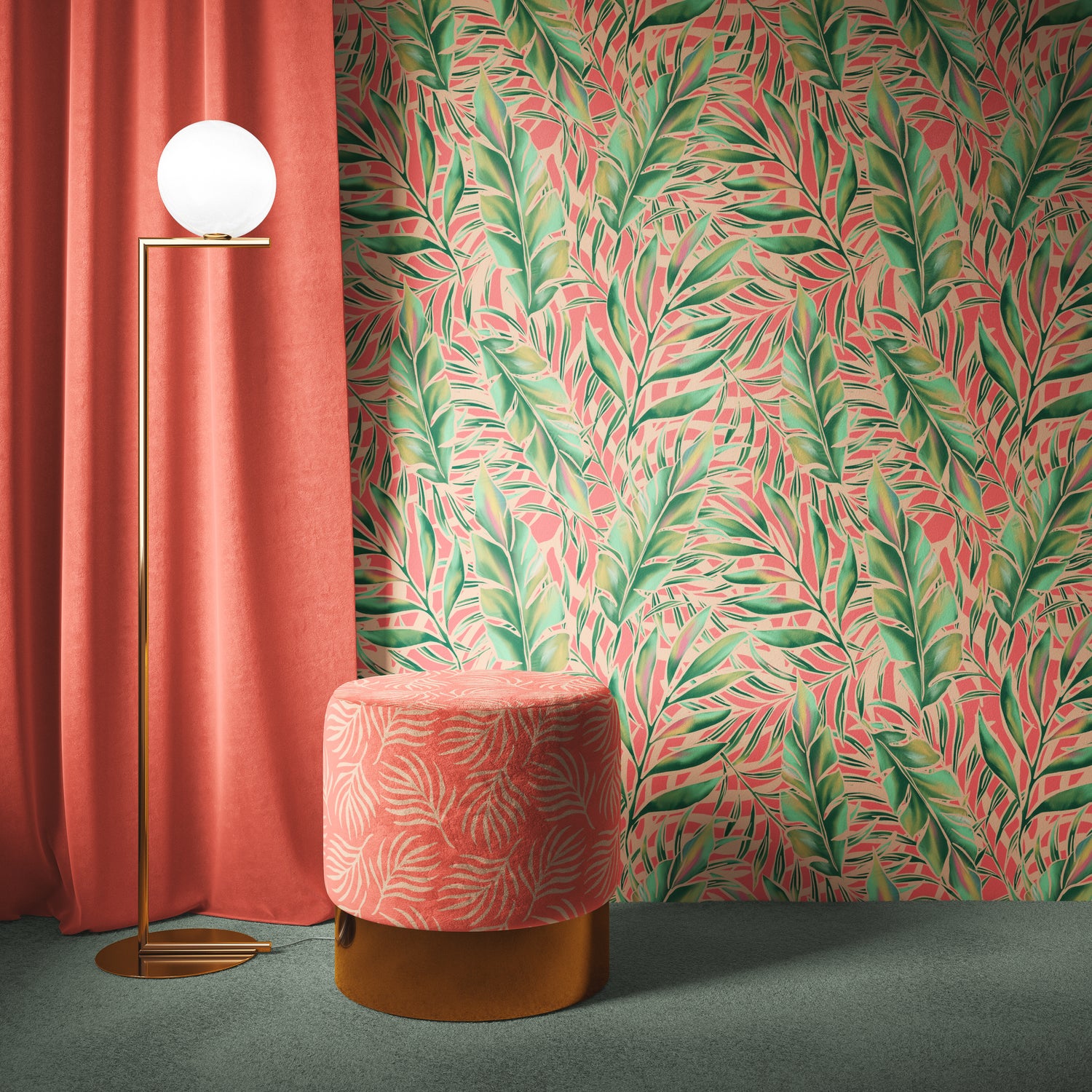 I used this stunning interior mockup to showcase my Palm Beach wallpaper + coordinating stool design.