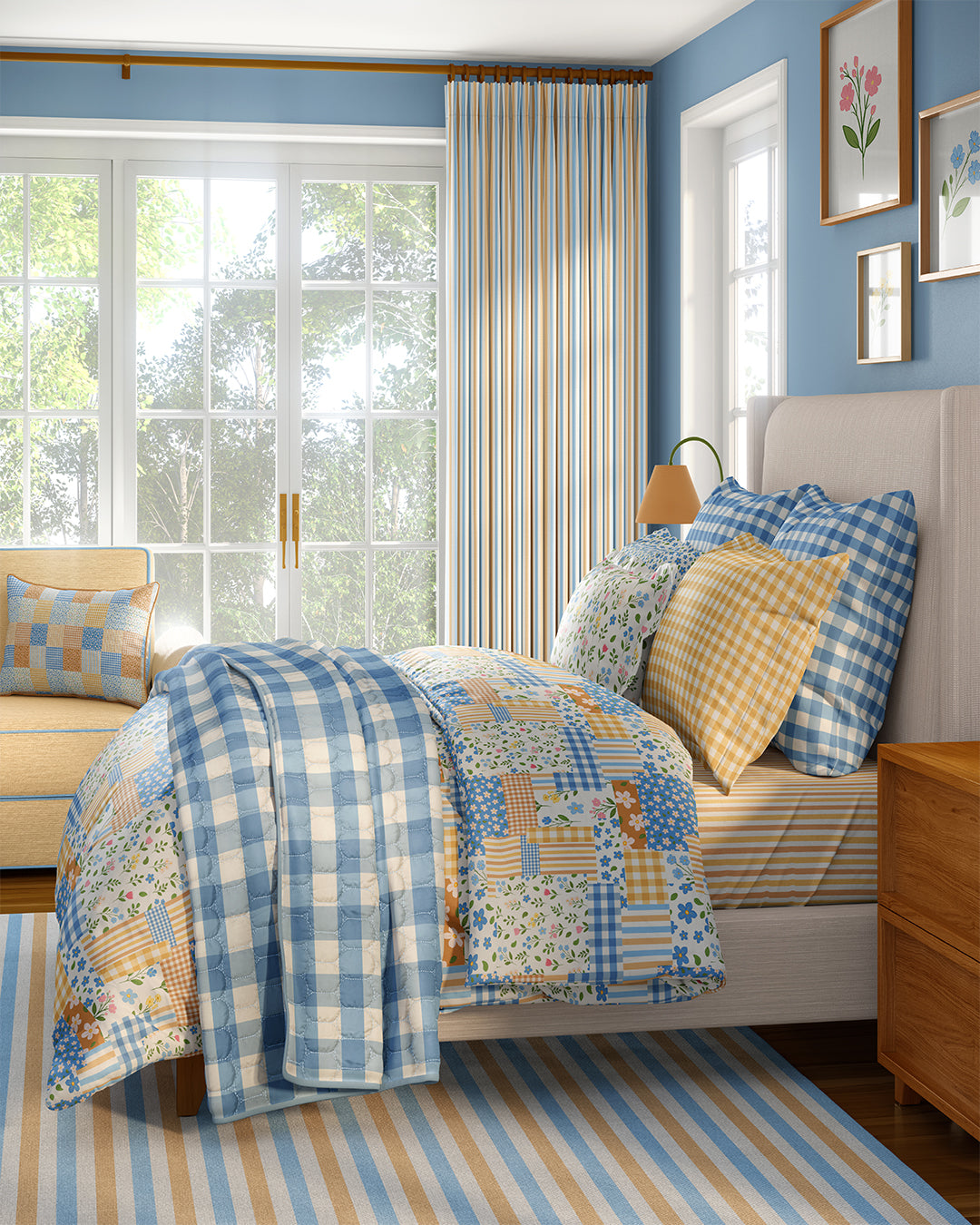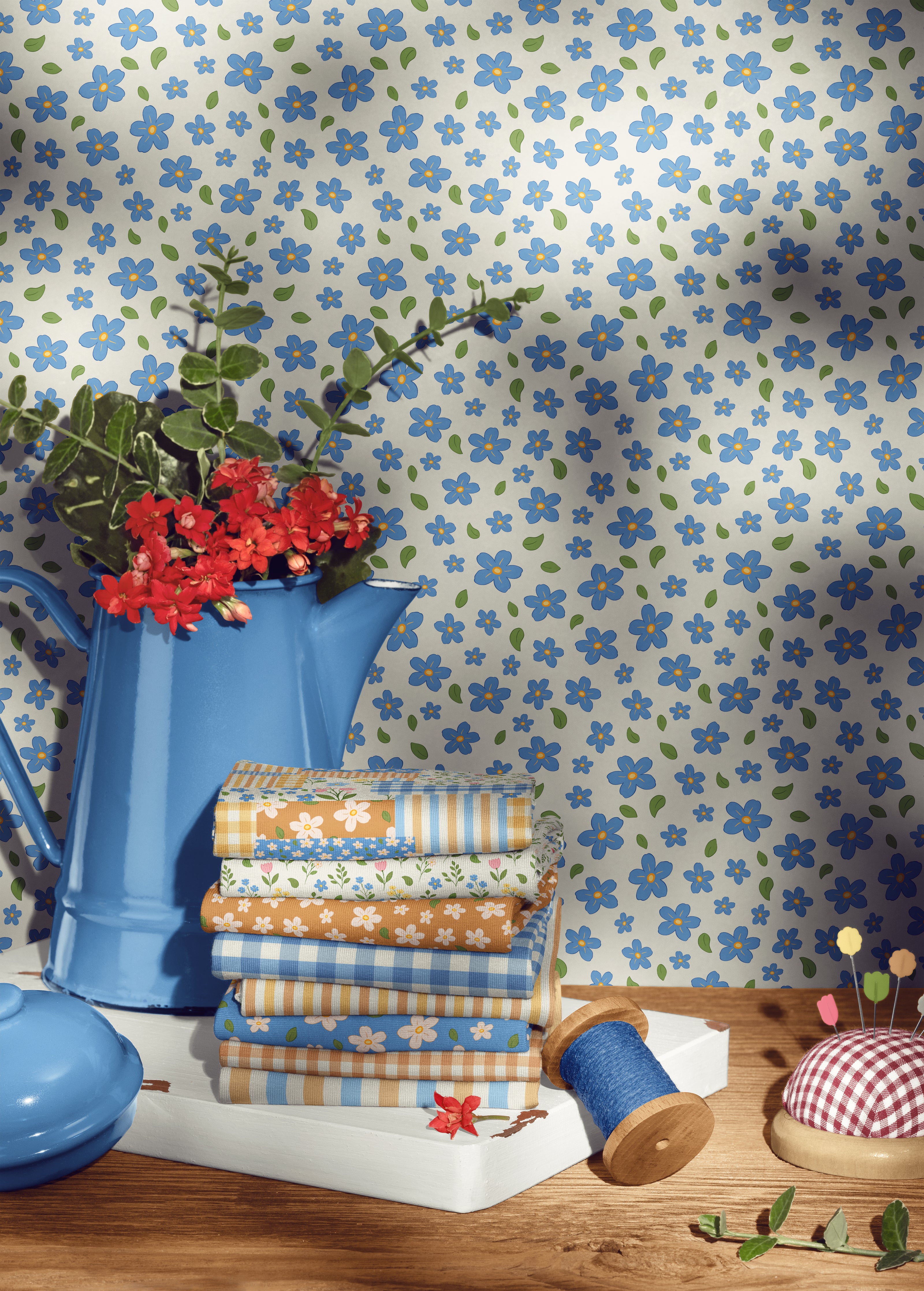 Pulling from the simplicity of vintage farm life and the softness of retro countryside palettes, this collection blends classic gingham, timeless stripes, and delicate florals into a story that feels both comforting and joyful. It captures the warmth of handmade quilts, breezy meadow afternoons, and the kind of wholesome beauty that feels grounded yet playful.